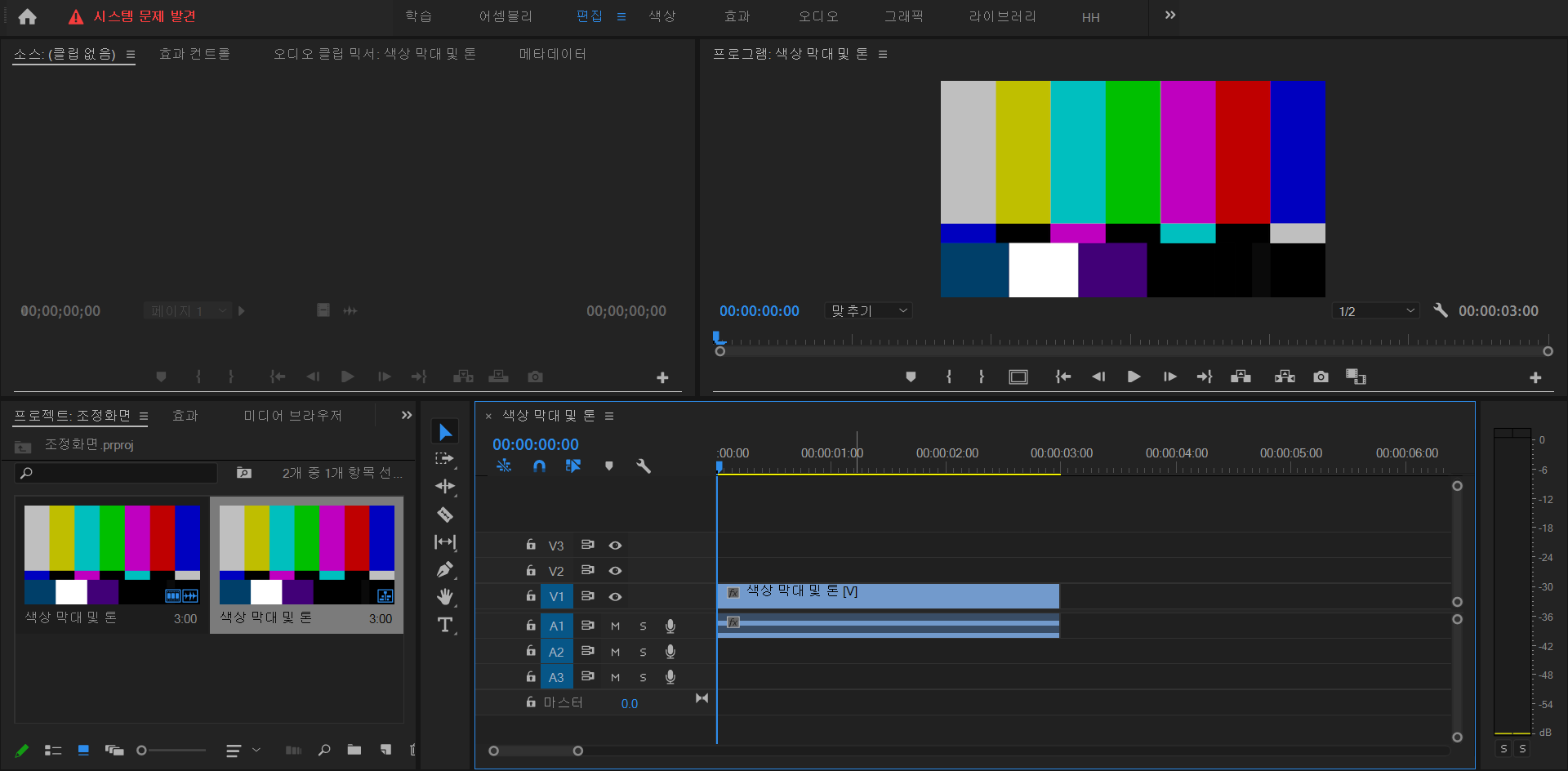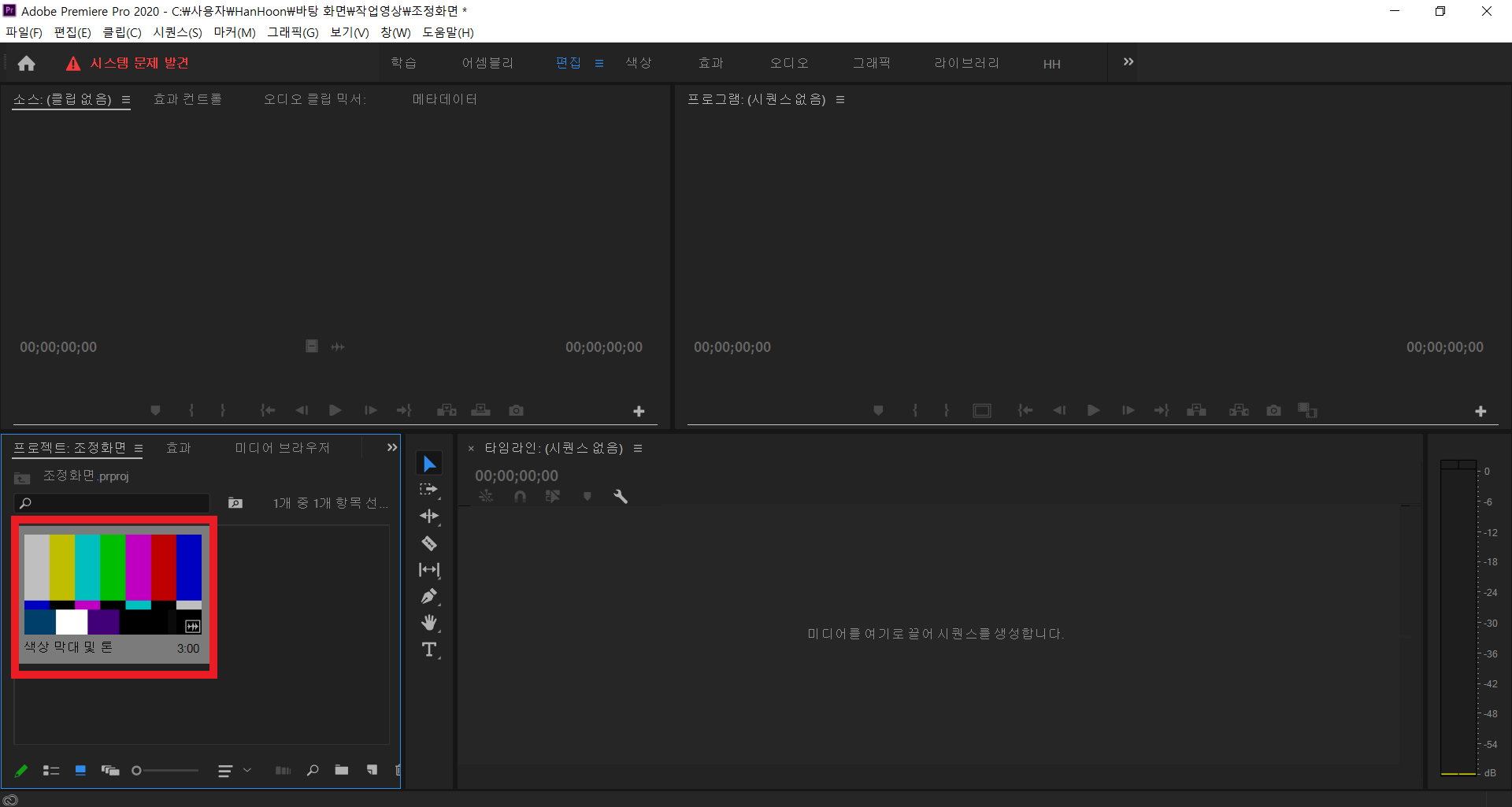 왼쪽 아래 프로젝트 페널 [오른쪽 마우스 클릭] - [새 항목] - [색상 막대 및 톤]