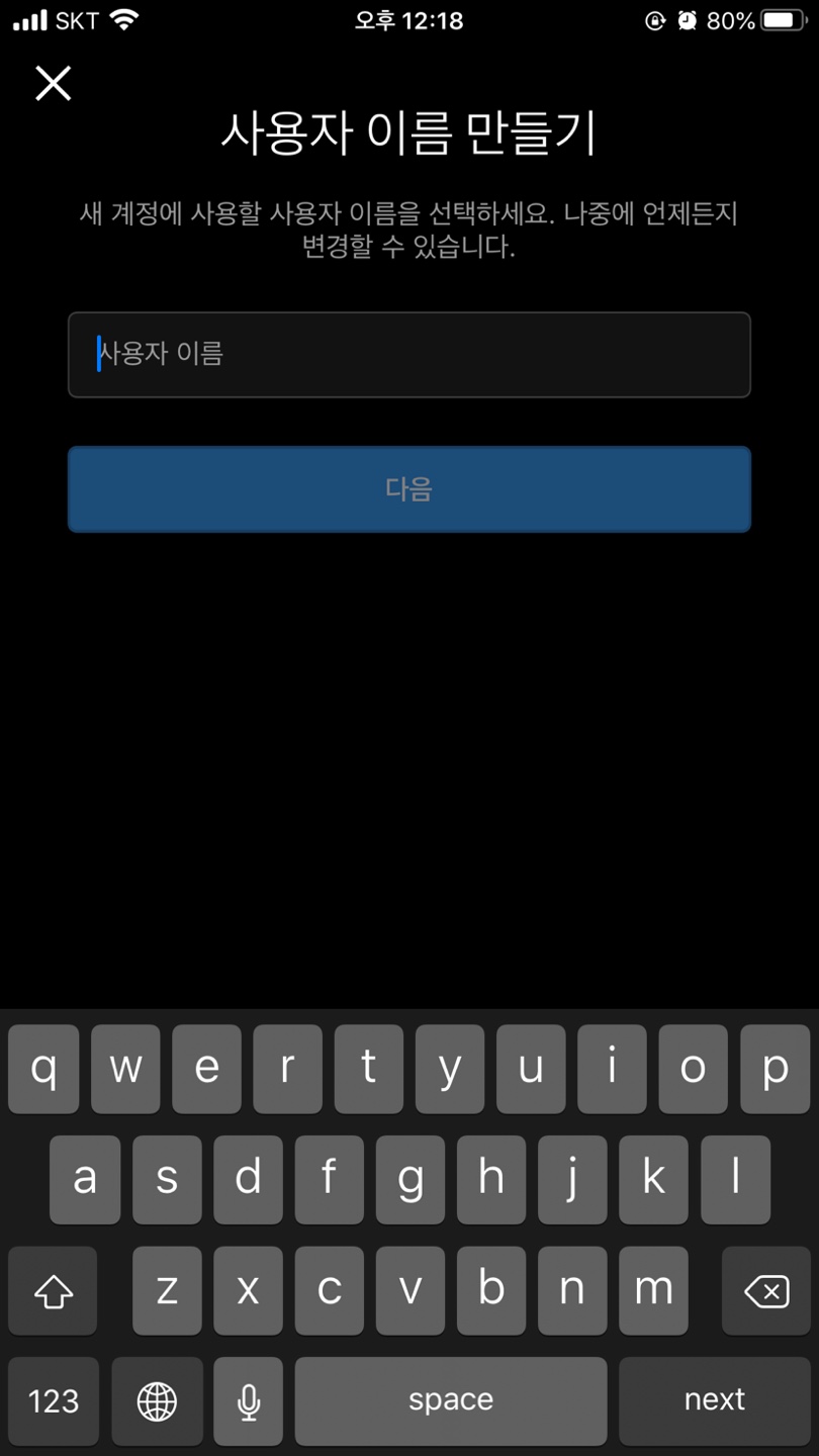 계정 이름이 앞으로 사용할 이름입니다. 이 부분은 수정하기 어려우니 먼저 정해주시고 다음으로 넘어가시면 됩니다.