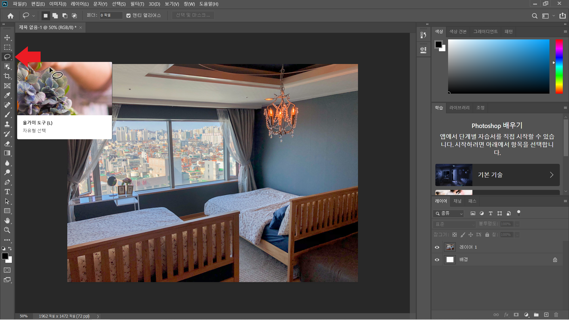 ※선택영역을 취소하고 싶을 때는 선택영역 말고 다른 쪽을 찍어줘도 되는데,